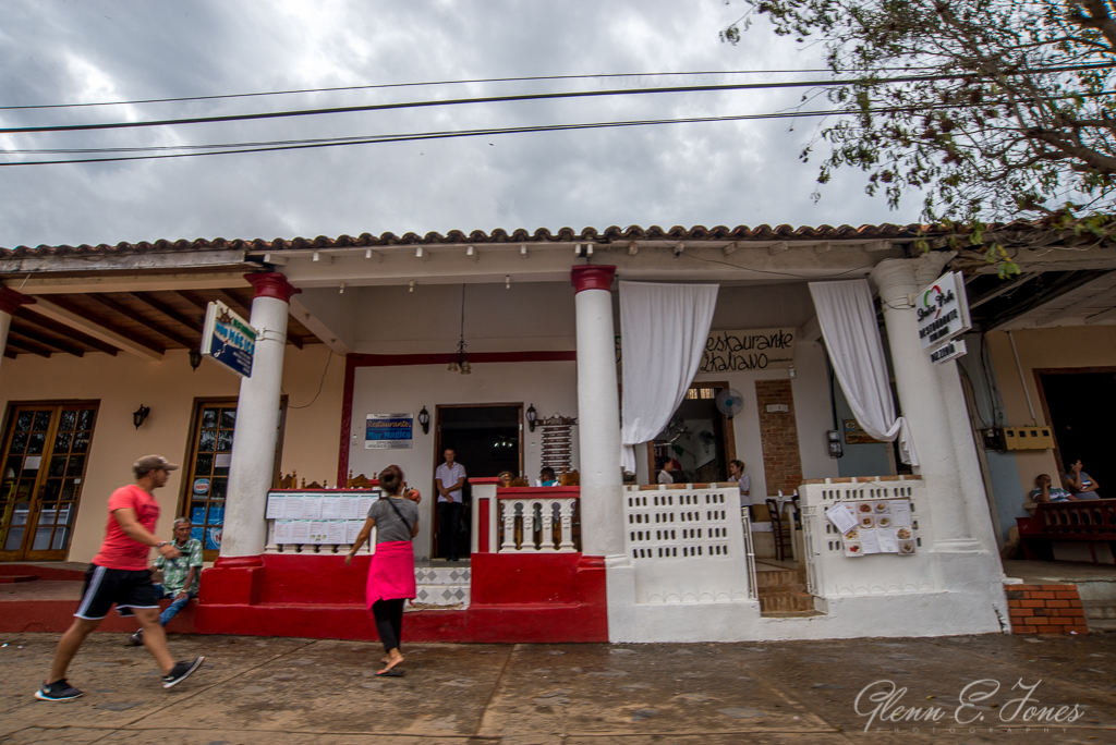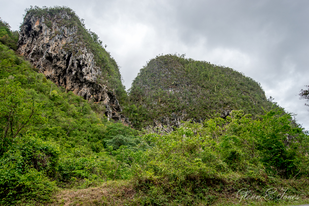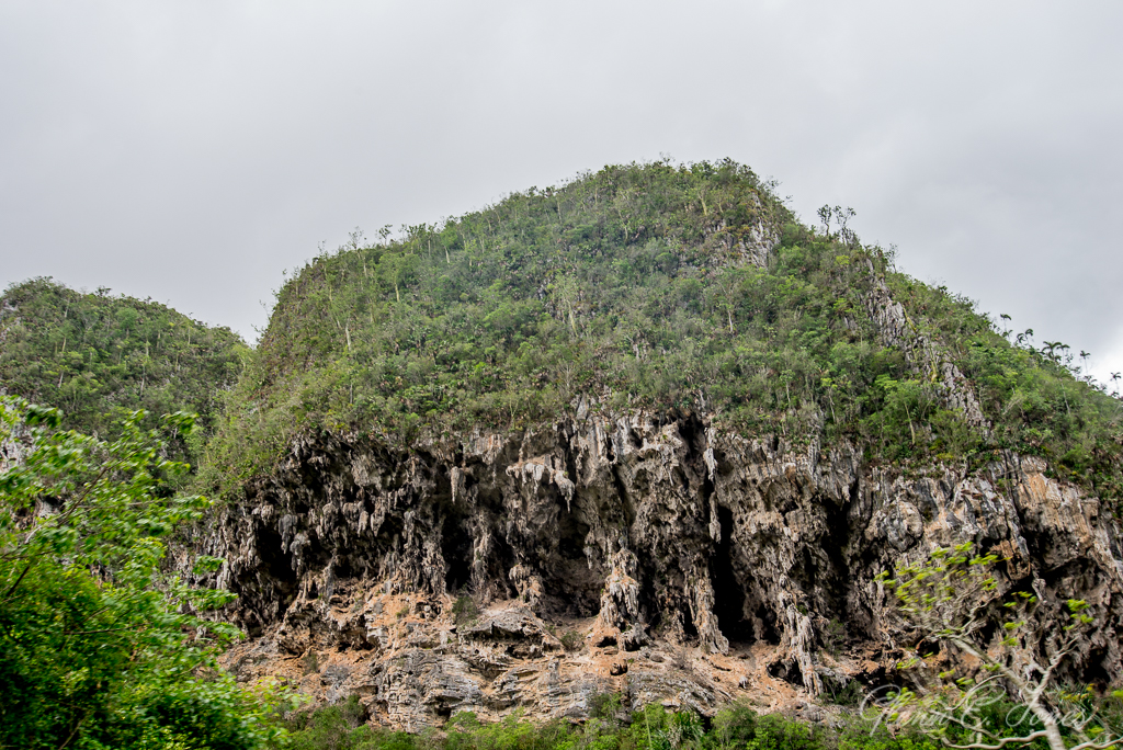 We reached the village of Viñales, finding a small community trapped in time. Here, the locals are taking advantage of this being a World UNESCO area and now a tourist destination. You can see numerous shops and cafes geared towards tourism. In the windows of a plethora of homes, we noticed signs advertising rooms for rent. Also visible, people (tourists) walking or riding bikes all over town. How can I tell the difference? Maybe it’s the “pale white” skin and black socks with plaid shorts and a map that could be the clear giveaway. Driving on, we headed towards tall mountains where you could see caves. We stopped several times for photos. Finally reaching “Cuevas del Indio,” we parked and had to wait (because of the crowds) to enter the cave. While waiting, we observed a Native Cuban Indian recreation. While some in the group found this re-creation offensive, it reminded me of something I might have seen in Jamestown, VA on a field trip as a child. I wandered away to capture a few shots. Taking pictures on cloudy, dreary days can be challenging, at least to me.
