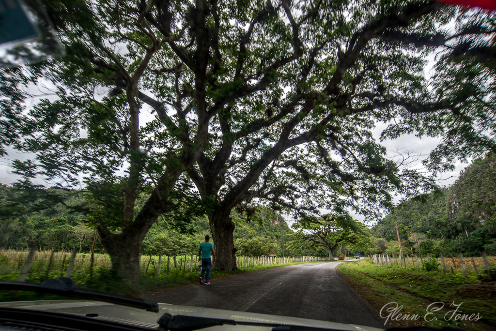 As with each morning, I started my day with a wonderful breakfast, followed by a brief walk to the ocean. Clearly, there’s nothing like the smell of the sea to jump-start your day. After spending a few minutes at the coast, the group picked me up as I walked back to Claudia’s Airbnb home. I climbed in the front seat, and we were off. This day started out as overcast. The forecast had suggested today would be a rainy one. Yet, we still had hope. The day before had a similar forecast and ended up being perfect to stroll through Old Havana. As we drove west, I noticed several things. On this Saturday, people were still trying find transportation wherever they could. The bus stops were packed with travelers. Secondly, the number of people riding high quality road bikes in packs were noticed during the first hour. They almost looked like riders from the Cuban version of the “Texas MS 150.” Upon clearing the coastal region, the sun came out, the clouds faded, and the skies began to clear. After snapping a few dozen driving photos, I settled in and tried to sleep off lingering effects from the previous night’s adventure at Fábrica de Arte Cubano and perhaps one too many mojitos. Waking up an hour later, the clear skies were gone with dark, menacing clouds now in front of us and along the mountain range to our right. It’s nearly a 3-hour drive, so driving through different atmospheric events would be quite possible.