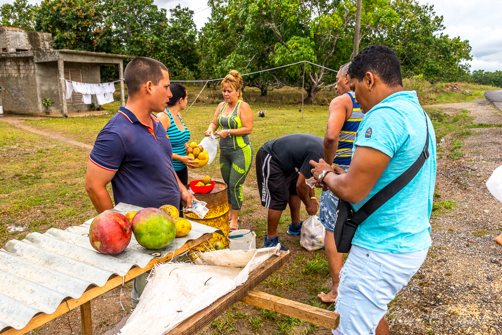 By this time rain had taken over, a slow drenching rain to be precise. There’s a mural here, painted on the side of a mountain. We so wanted to explore this, but mother nature had other thoughts. At least we got to see it, from the car. During a second rest area break, two of our group wanted to go to Havana for dinner, the others decided to head back home. I was a part of the latter group. The drive began innocently enough as we enjoyed the countryside, great conversation and the curvy roads. We stopped a few times to purchase Mangos and Pineapples on the side of the road. Harold and our driver were making deals to get the freshest produce they could. A whole bag for a dollar! You won’t find prices like that at HEB, Kroger or Farm Fresh. Behind one of the produce stands, a tour bus was pulled on the side of the road while the driver changed a windshield wiper blade. An interesting observation that proved to relevant later in this tale.