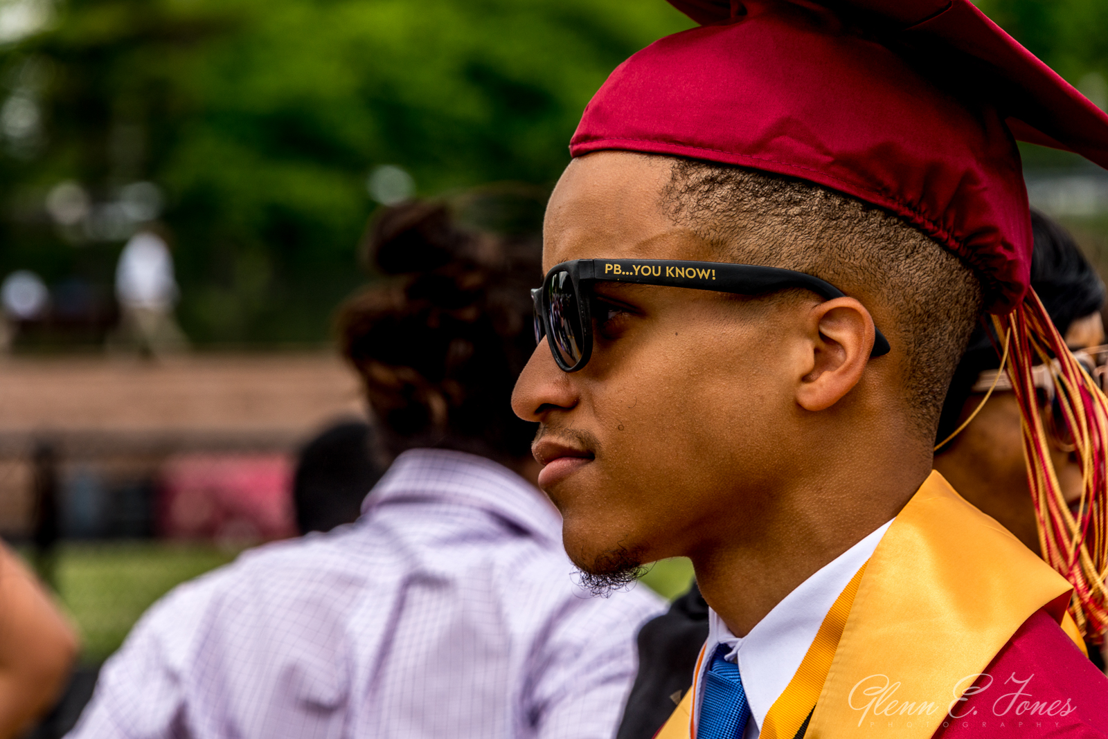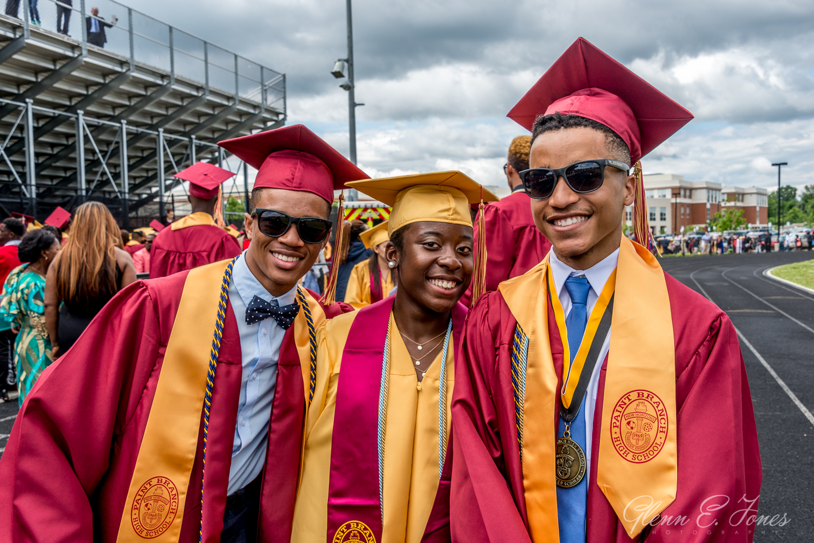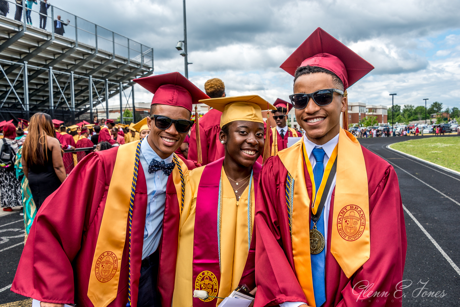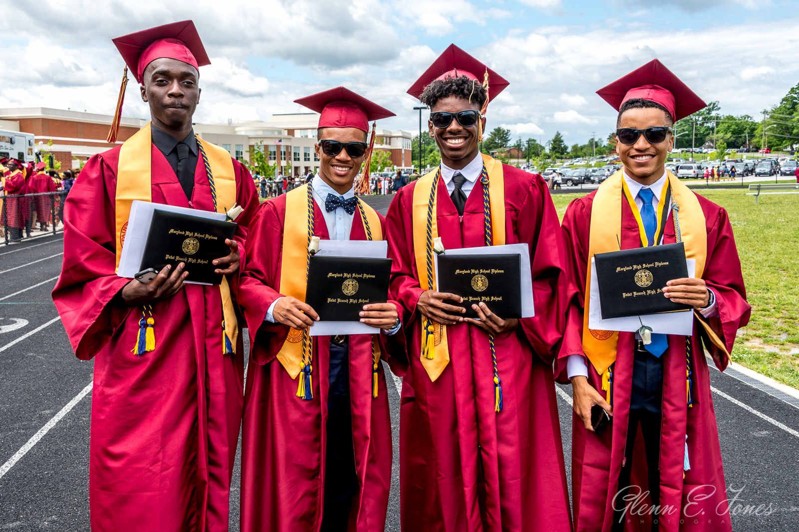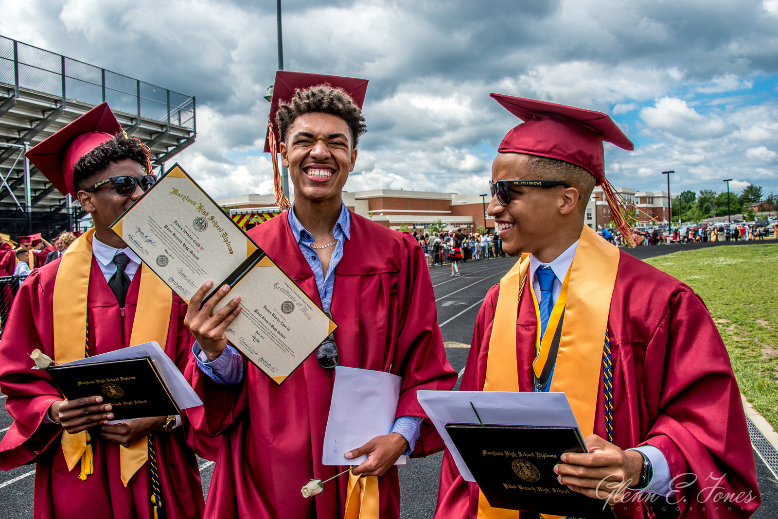 The rest of the program moved along in a blur and finally they marched out. One chapter of his life closed, well almost. He had a state track meet the next day. As the stream of graduates passed behind the stadium, I wandered in searching for Glenn. Finding him, Glenn stood proudly with friends wearing sunglasses and posing for photos. I took dozens of shots here, as friends and families stopped to document this amazing moment in history.