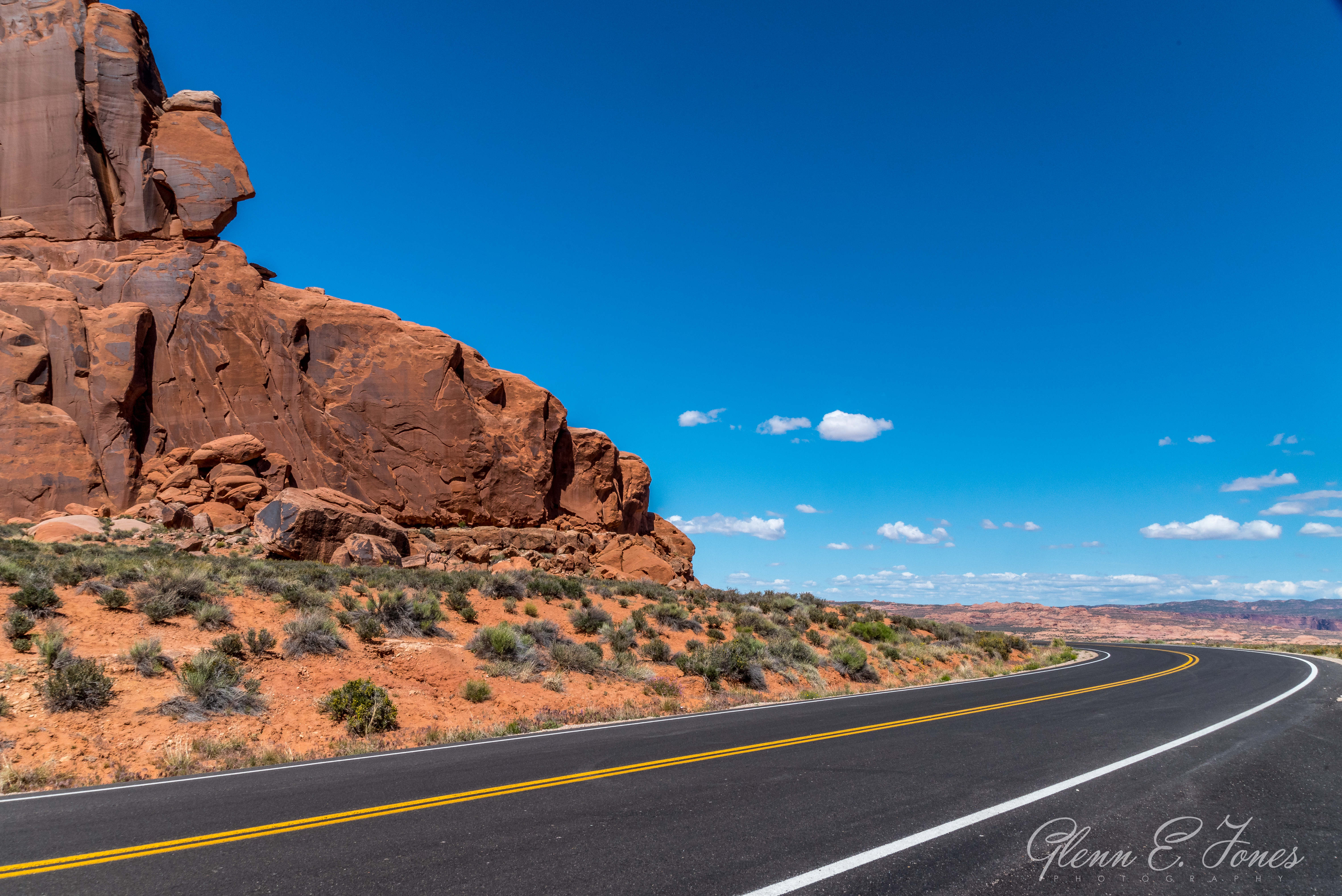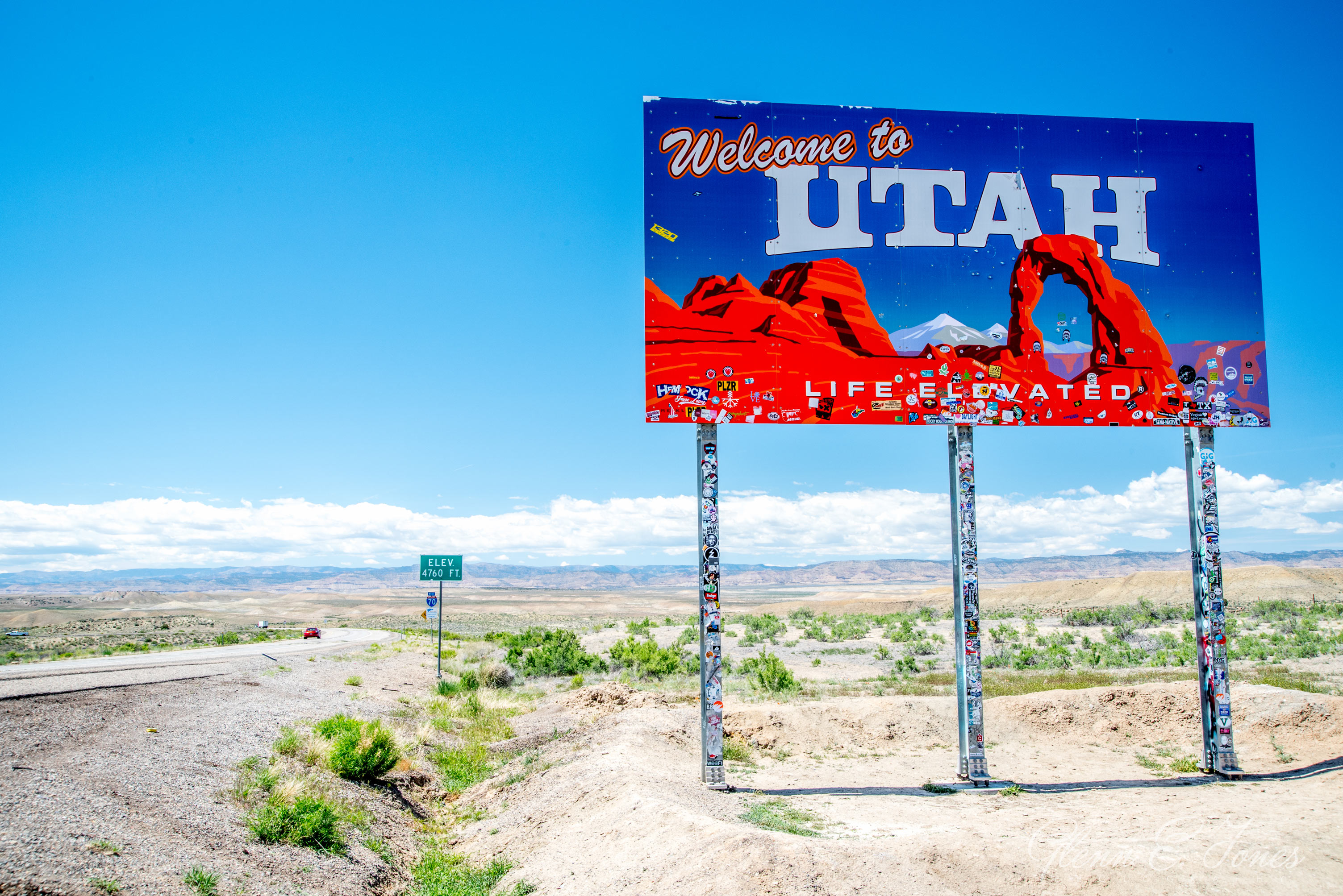 Go west young man! I was on the road, driving nearly 5 hours and 350 miles to Arches National Park. The views were amazing and pictures would never fully convey what I was seeing along the way. Taking photos while driving is frowned upon in the United States compared to other parts of the world, so you’ll have to trust me on this one. It was cool though, seeing signs for Breckenridge, Vail, and Aspen while winding through the countryside. After dozens of mountain passes and then vast plains, I reached the Arizona/Utah border. One hour at 85 miles an hour, and I’d reach my destination. No longer in the tundra, the temperature was now pushing 95 degrees.