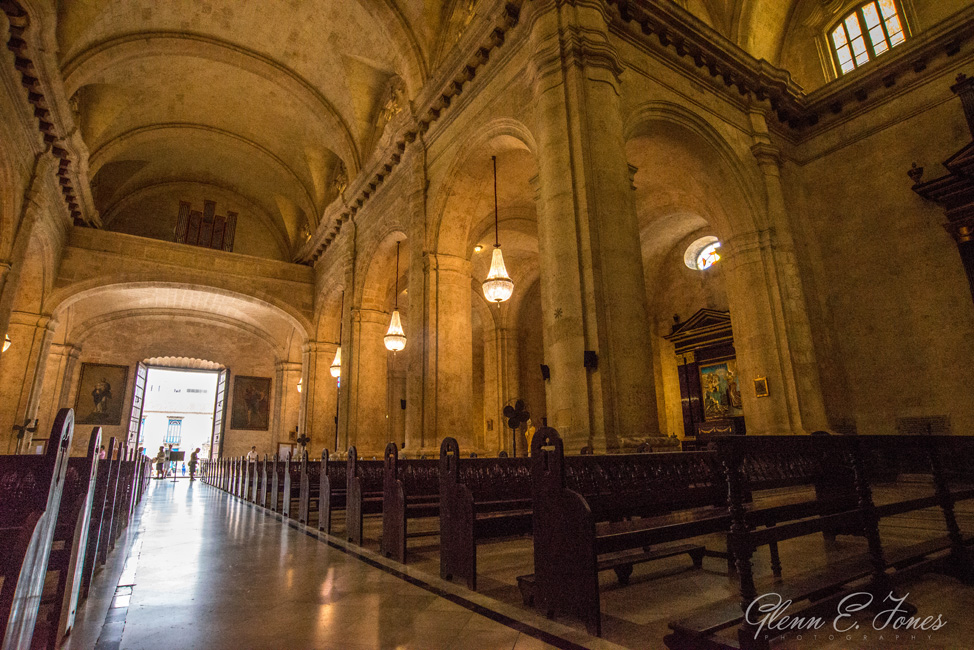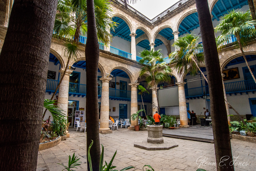 Shortly after an amazing breakfast, fresh juice and Cuban coffee, we headed to Old Havana in a 1959 blue and white Chevy. Harold, our driver and the four of us arrived in town shortly after 10. The first thing I noticed was the long line of people in front on the Spanish Embassy. Harold said the country where many Cuban people want to relocate. It was an interesting observation. We were dropped off for a few minutes near the Museum of the Revolution. It was cloudy and rain was threatening, but we were not deterred. We walked down one street, clearly looking like tourists. A man approached us, very friendly and began to engage us in conversation. The next thing we knew, we were in a small bar having (what we later figured out) an expensive cocktail. The place was dark but fun. We paid for our drinks and moved on. By this time, Harold returned and we began our walking tour.